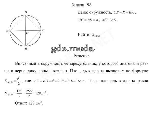 ОТВЕТ на задание № 198 Учебник по Геометрии 8 класс Казаков