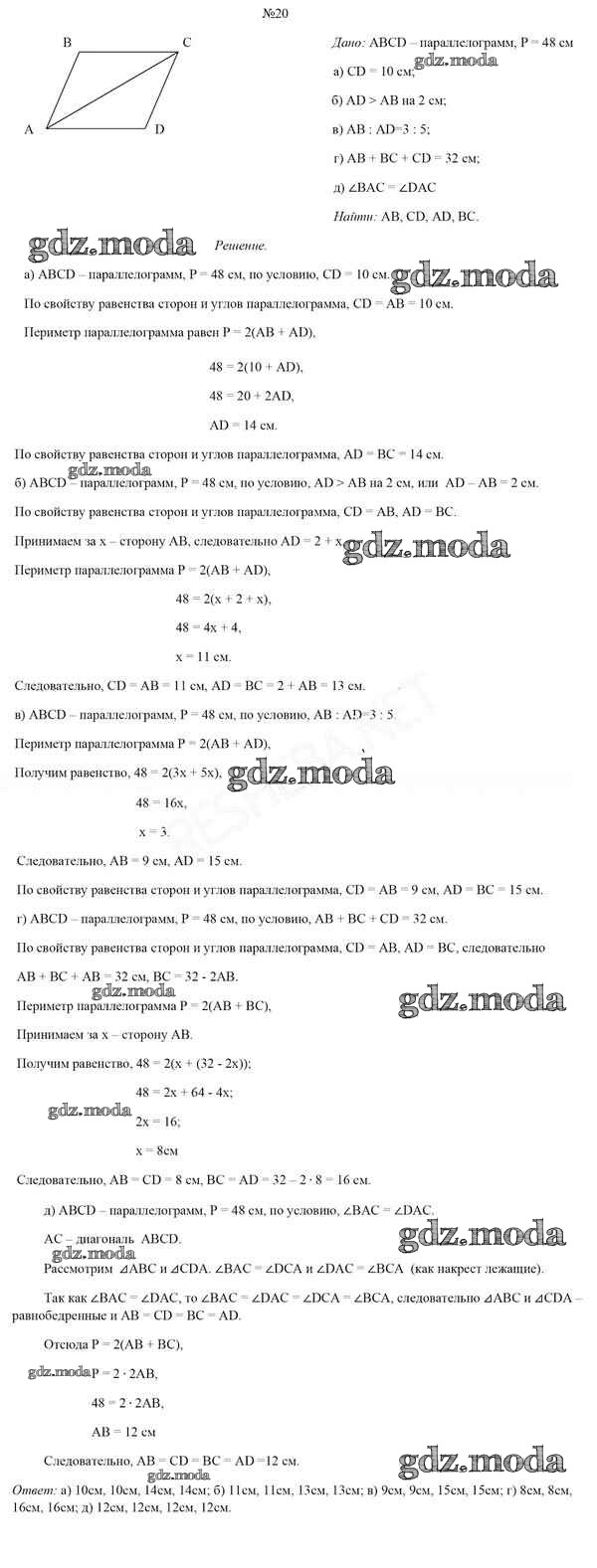 ОТВЕТ на задание № 20 Учебник по Геометрии 8 класс Казаков
