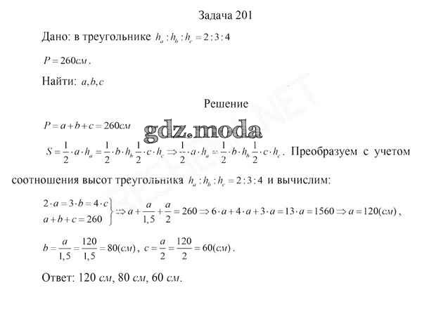 ОТВЕТ на задание № 201 Учебник по Геометрии 8 класс Казаков