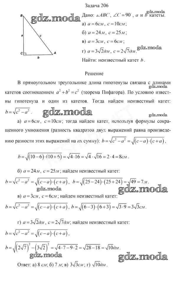 ОТВЕТ на задание № 206 Учебник по Геометрии 8 класс Казаков