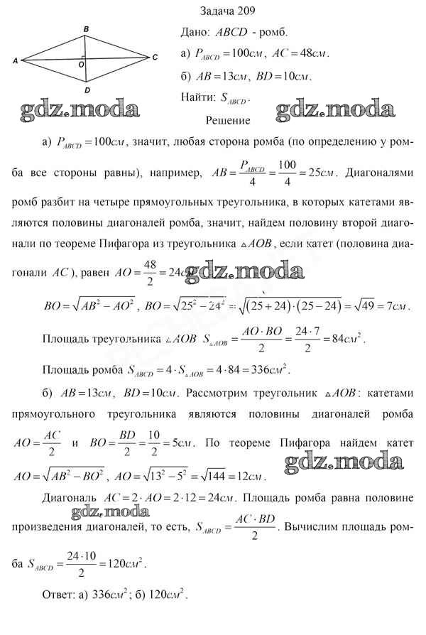 ОТВЕТ на задание № 209 Учебник по Геометрии 8 класс Казаков
