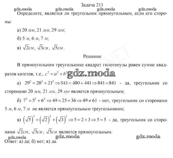 ОТВЕТ на задание № 211 Учебник по Геометрии 8 класс Казаков