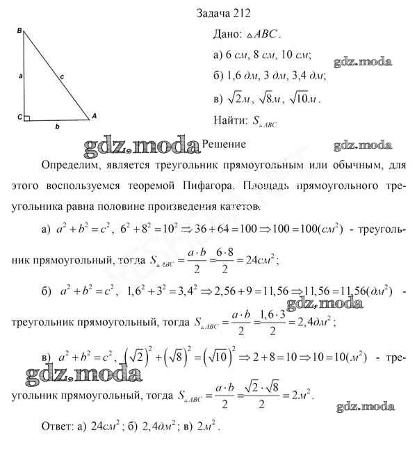 ОТВЕТ на задание № 212 Учебник по Геометрии 8 класс Казаков