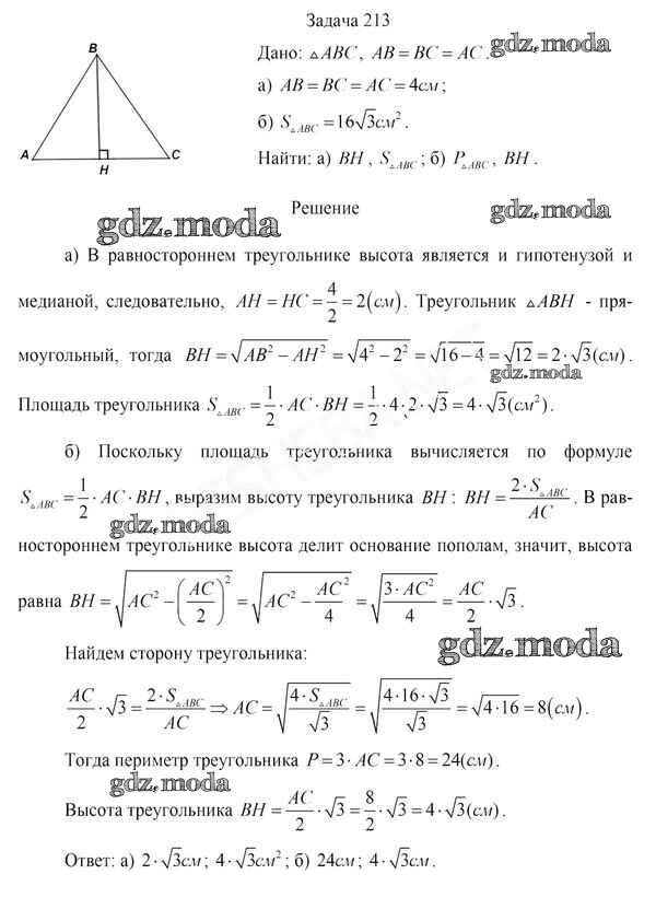 ОТВЕТ на задание № 213 Учебник по Геометрии 8 класс Казаков