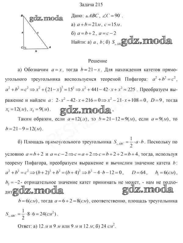ОТВЕТ на задание № 215 Учебник по Геометрии 8 класс Казаков