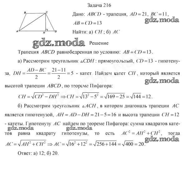 ОТВЕТ на задание № 216 Учебник по Геометрии 8 класс Казаков