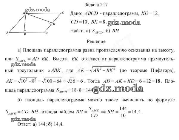 ОТВЕТ на задание № 217 Учебник по Геометрии 8 класс Казаков