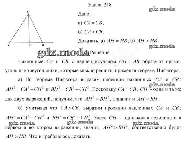 ОТВЕТ на задание № 218 Учебник по Геометрии 8 класс Казаков