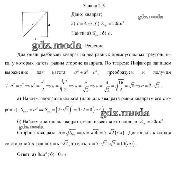 ОТВЕТ на задание № 219 Учебник по Геометрии 8 класс Казаков