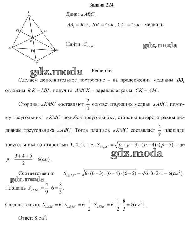 ОТВЕТ на задание № 224 Учебник по Геометрии 8 класс Казаков