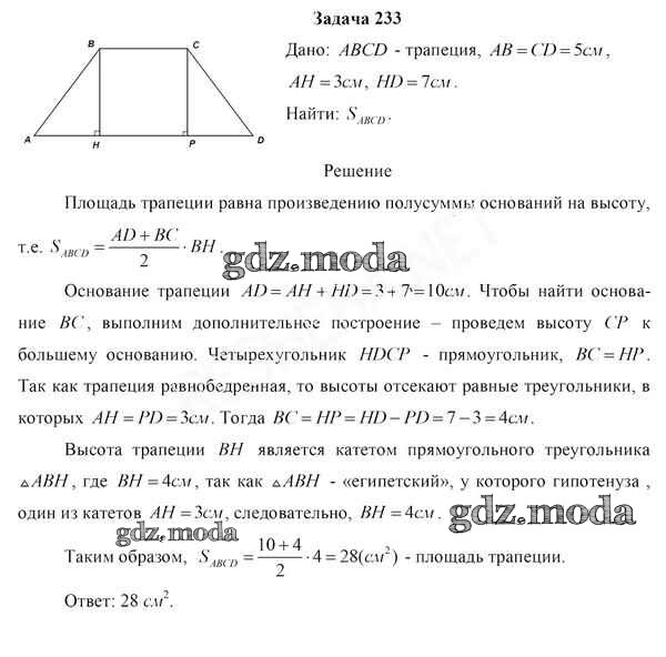 ОТВЕТ на задание № 233 Учебник по Геометрии 8 класс Казаков