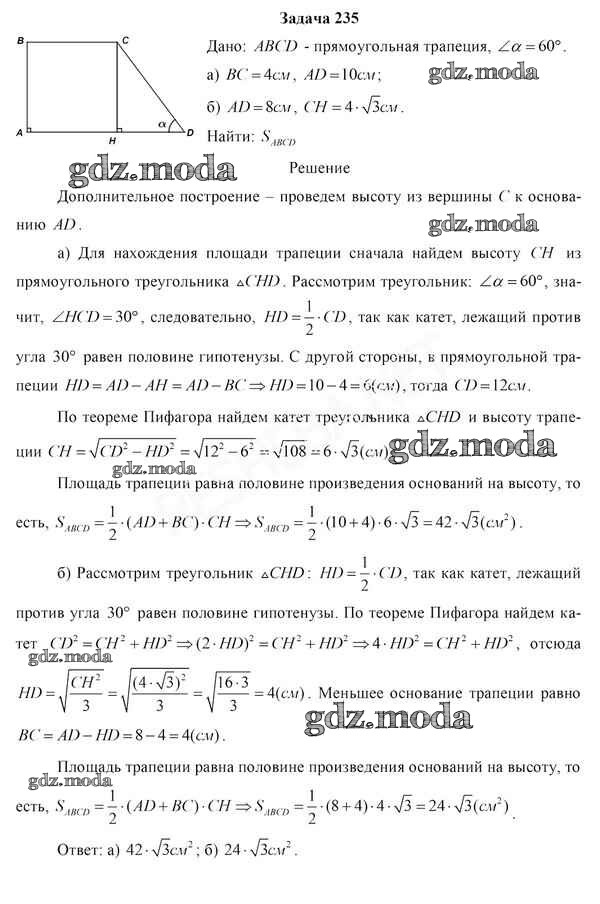 ОТВЕТ на задание № 235 Учебник по Геометрии 8 класс Казаков
