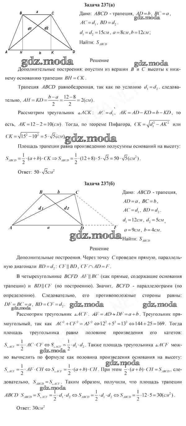 ОТВЕТ на задание № 237 Учебник по Геометрии 8 класс Казаков