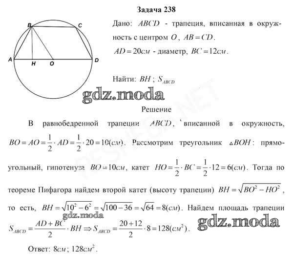 ОТВЕТ на задание № 238 Учебник по Геометрии 8 класс Казаков