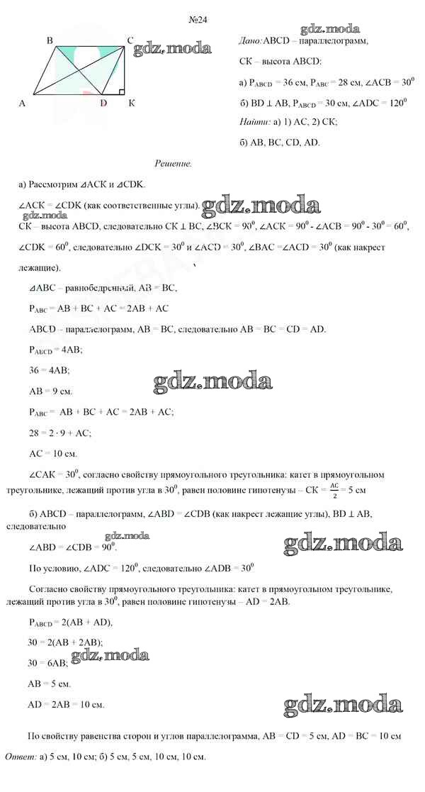 ОТВЕТ на задание № 24 Учебник по Геометрии 8 класс Казаков