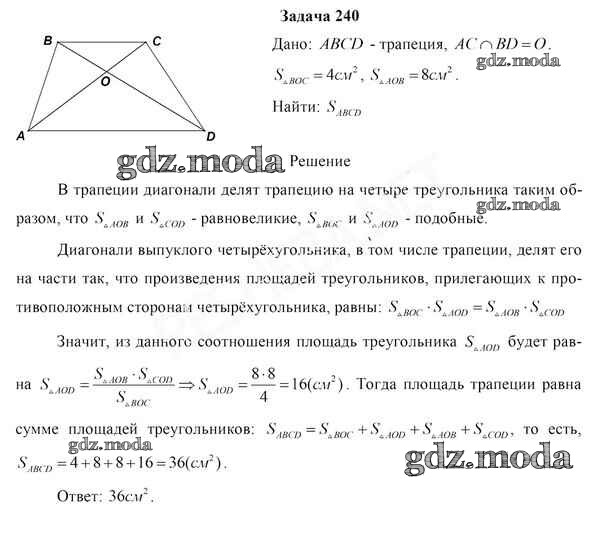 ОТВЕТ на задание № 240 Учебник по Геометрии 8 класс Казаков