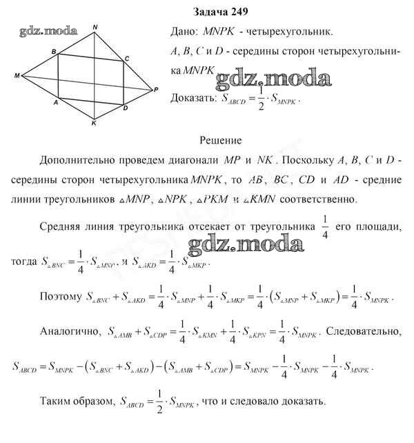 ОТВЕТ на задание № 249 Учебник по Геометрии 8 класс Казаков