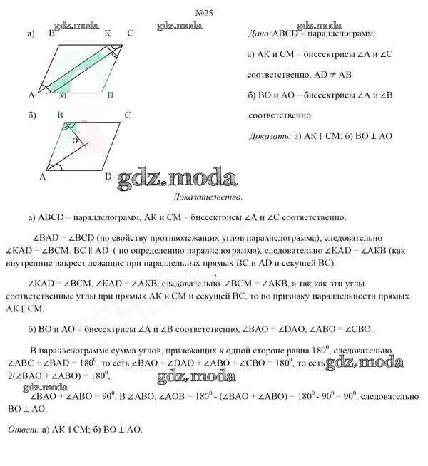 ОТВЕТ на задание № 25 Учебник по Геометрии 8 класс Казаков