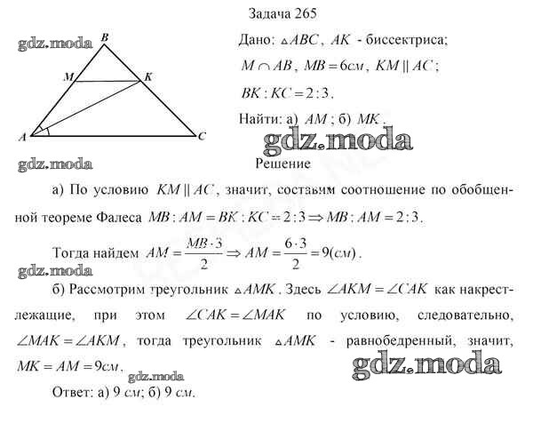 ОТВЕТ на задание № 265 Учебник по Геометрии 8 класс Казаков