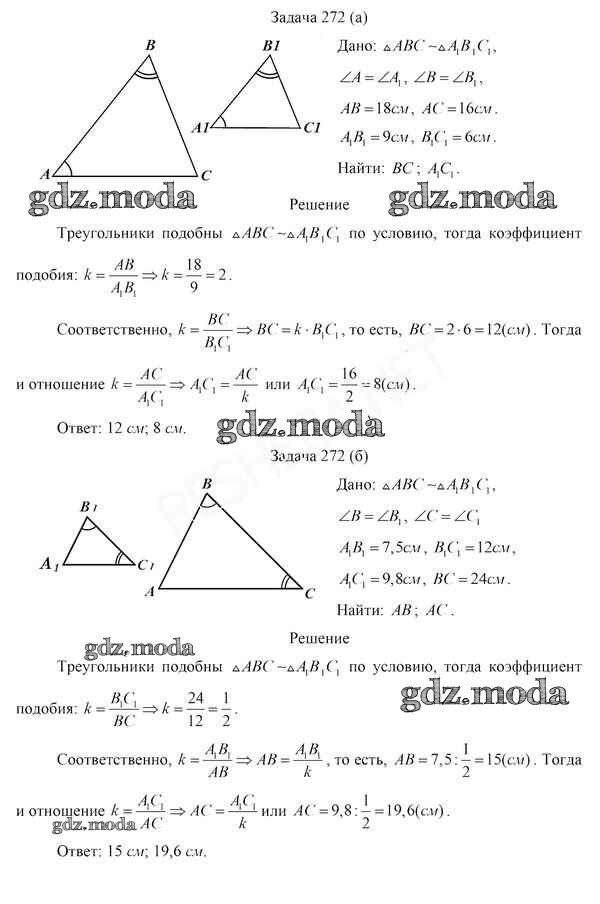 ОТВЕТ на задание № 272 Учебник по Геометрии 8 класс Казаков