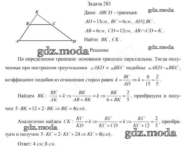 ОТВЕТ на задание № 283 Учебник по Геометрии 8 класс Казаков