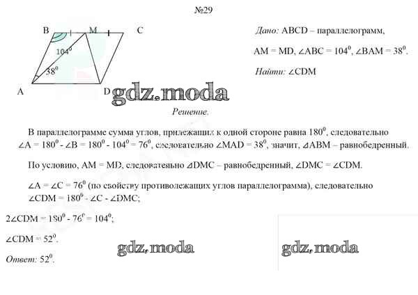 ОТВЕТ на задание № 29 Учебник по Геометрии 8 класс Казаков