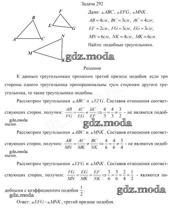 ОТВЕТ на задание № 292 Учебник по Геометрии 8 класс Казаков