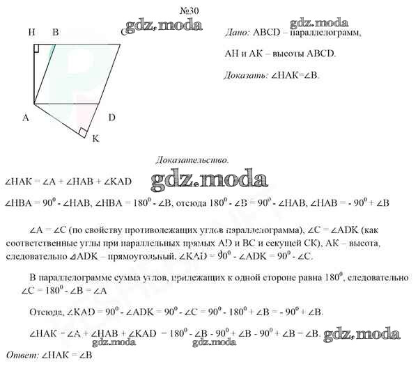ОТВЕТ на задание № 30 Учебник по Геометрии 8 класс Казаков