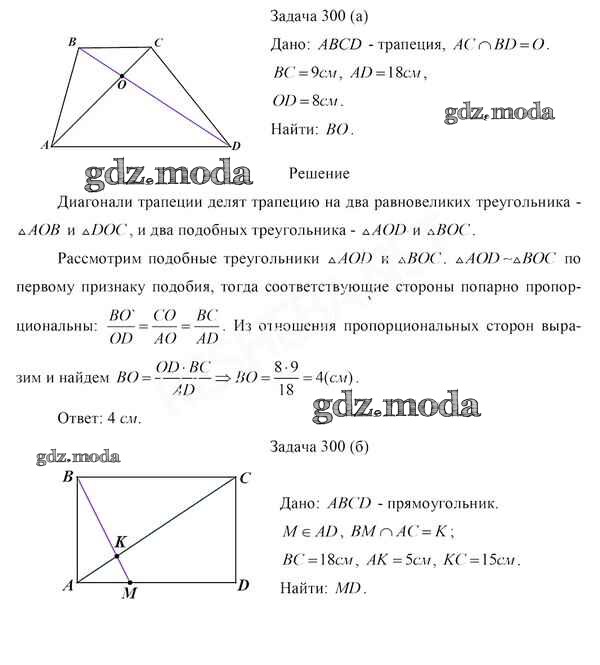 ОТВЕТ на задание № 300 Учебник по Геометрии 8 класс Казаков