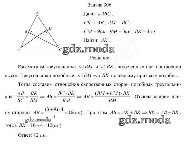 ОТВЕТ на задание № 306 Учебник по Геометрии 8 класс Казаков