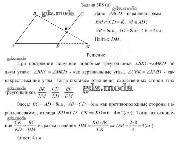 ОТВЕТ на задание № 308 Учебник по Геометрии 8 класс Казаков