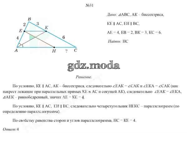 ОТВЕТ на задание № 31 Учебник по Геометрии 8 класс Казаков