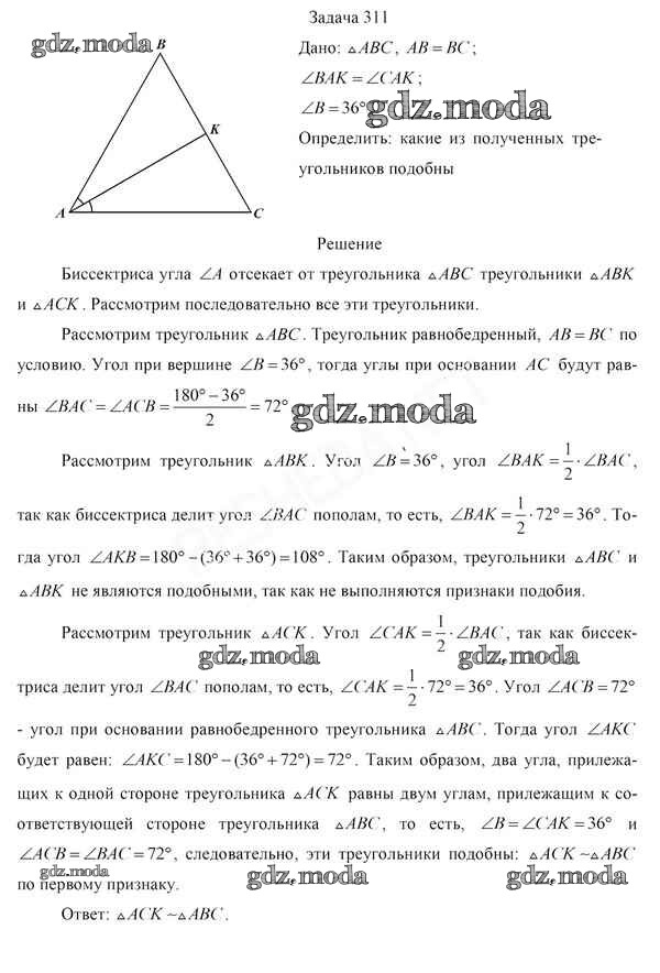 ОТВЕТ на задание № 311 Учебник по Геометрии 8 класс Казаков