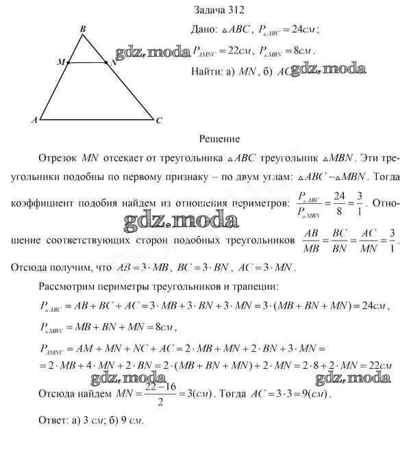ОТВЕТ на задание № 312 Учебник по Геометрии 8 класс Казаков