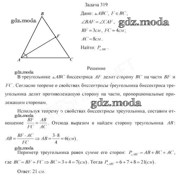 ОТВЕТ на задание № 319 Учебник по Геометрии 8 класс Казаков