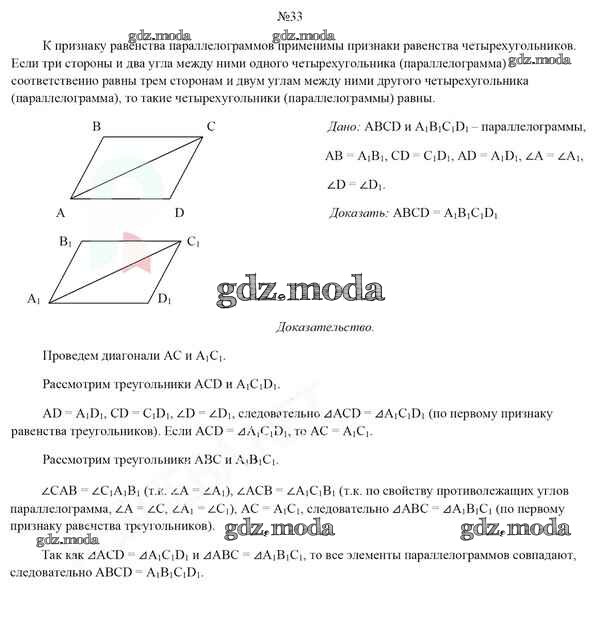 ОТВЕТ на задание № 33 Учебник по Геометрии 8 класс Казаков