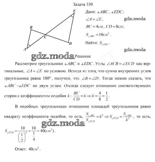 ОТВЕТ на задание № 330 Учебник по Геометрии 8 класс Казаков