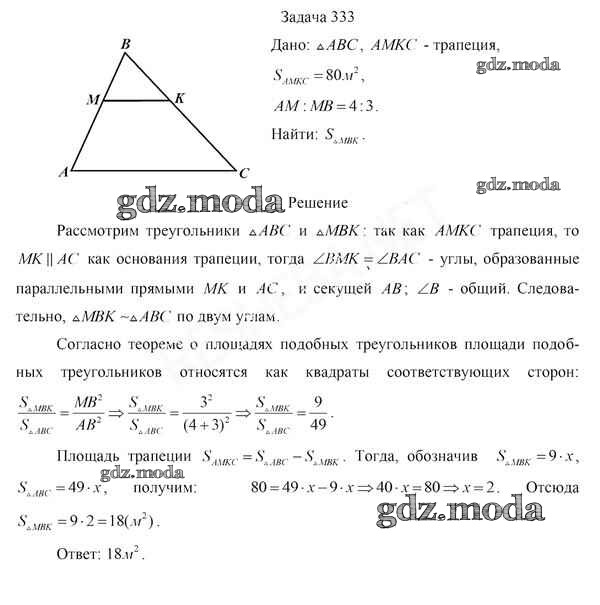 ОТВЕТ на задание № 333 Учебник по Геометрии 8 класс Казаков