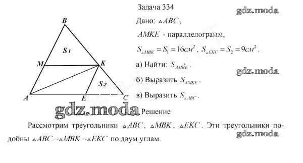 ОТВЕТ на задание № 334 Учебник по Геометрии 8 класс Казаков