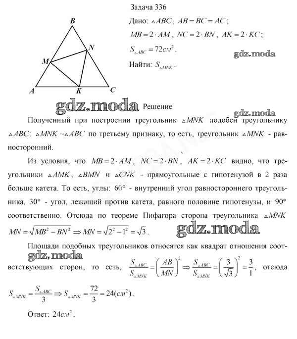 ОТВЕТ на задание № 336 Учебник по Геометрии 8 класс Казаков