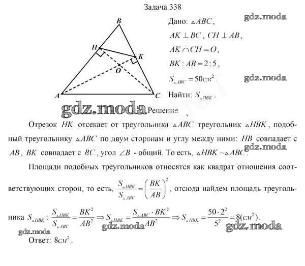 ОТВЕТ на задание № 338 Учебник по Геометрии 8 класс Казаков