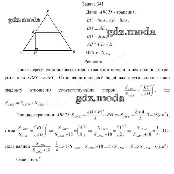 ОТВЕТ на задание № 341 Учебник по Геометрии 8 класс Казаков