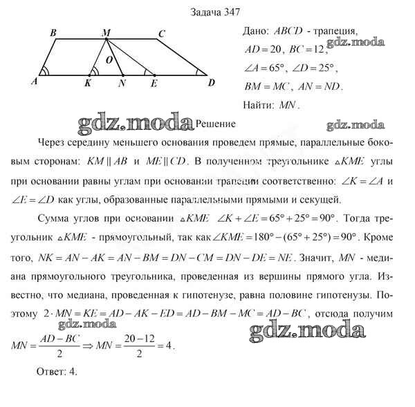 ОТВЕТ на задание № 347 Учебник по Геометрии 8 класс Казаков