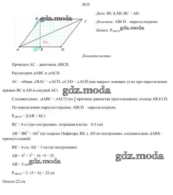 ОТВЕТ на задание № 35 Учебник по Геометрии 8 класс Казаков
