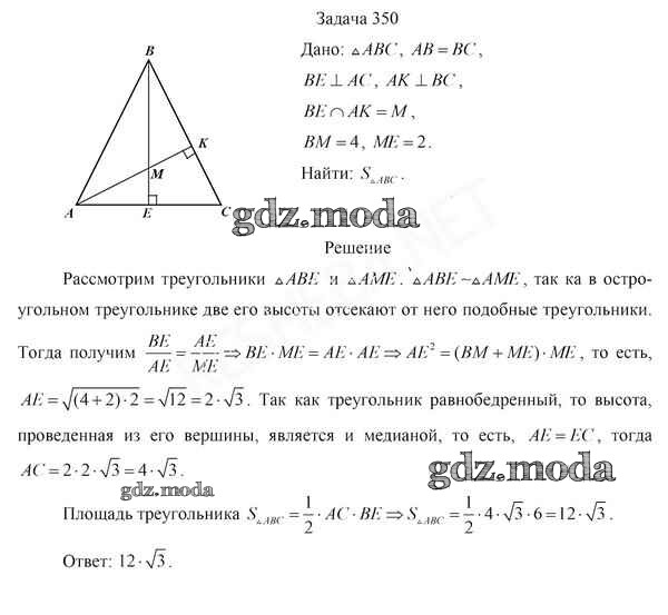 ОТВЕТ на задание № 350 Учебник по Геометрии 8 класс Казаков