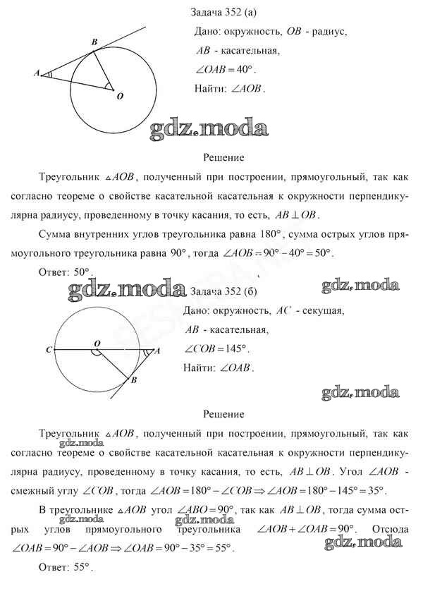 ОТВЕТ на задание № 352 Учебник по Геометрии 8 класс Казаков