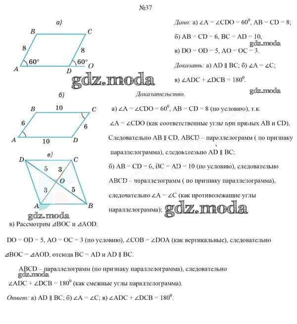 ОТВЕТ на задание № 37 Учебник по Геометрии 8 класс Казаков
