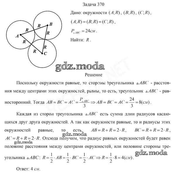 ОТВЕТ на задание № 370 Учебник по Геометрии 8 класс Казаков
