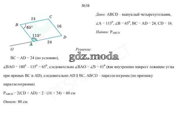 ОТВЕТ на задание № 38 Учебник по Геометрии 8 класс Казаков