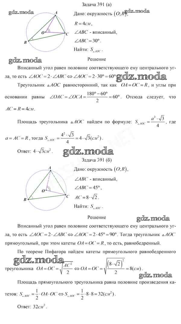 ОТВЕТ на задание № 391 Учебник по Геометрии 8 класс Казаков